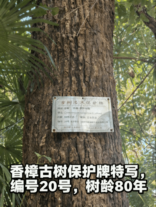这两棵香樟属樟科樟属(学名:Cinnamomum camphora (L.) Presl),作为乡土树种,其枝叶繁茂、四季常绿,既是城市生态系统中兼具观赏与生态价值的物种,也因 80 年树龄被列为古树名木后备资源。据保护牌信息显示,它们由益阳市人民政府于 2018 年元月挂牌保护,编号分别为 20 号、23 号。