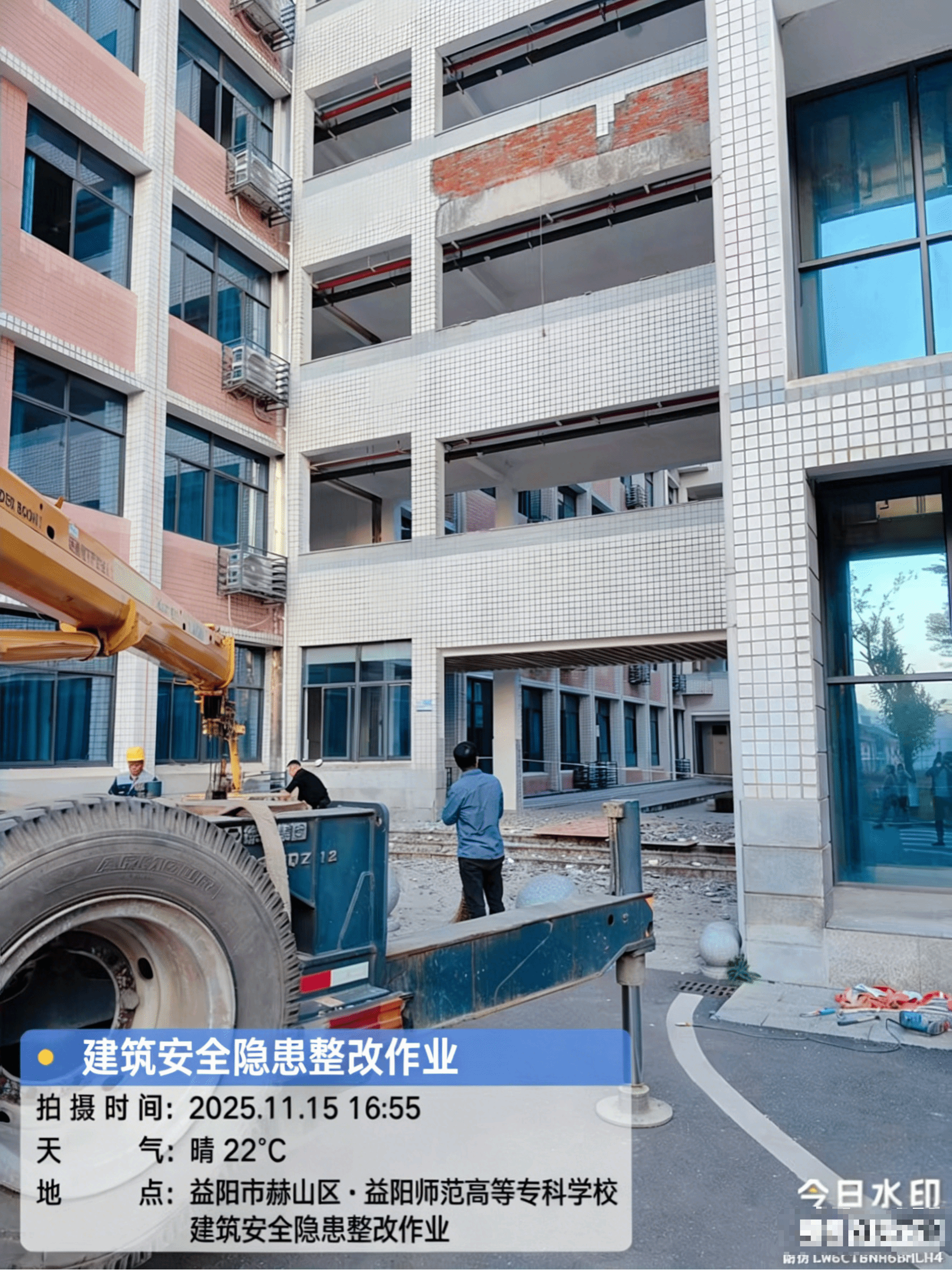 经全面排查,共识别登记安全风险隐患 27 项,主要集中在建筑结构及附属设施、消防安全、用电安全等领域。截至目前,专项行动已圆满完成,成果显著:墙面脱落、瓷砖空鼓、玻璃破碎等 19 项即时性隐患全部整改到位;天花板渗水等 8 项复杂性隐患已制定专项维修方案,落实警示隔离、定期巡查等管控措施,整改工作稳步推进。此外,学校强化部门协同,建立跨领域处置机制,通过主题班会、应急演练等开展安全教育,设立举报渠道,营造出群防群治的良好氛围。