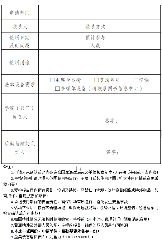 益阳师范高等专科学校益美楼报告厅使用申请表